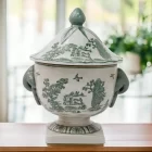 Introducing our Ceramic Green Parrot Palm Willow Urn, a captivating blend of tropical charm and artisanal craftsmanship. With a crackle glaze finish reminiscent of sun-dappled palm leaves, this urn brings a touch of exotic allure to any space. Featuring intricate parrot and willow motifs, it stands at 28cm tall with dimensions of D17 x H28 x W20cm, making it a striking centrepiece for your home decor. The spacious opening, measuring 15.5cm in diameter and 11cm in depth, allows for versatile use as a vase, planter, or decorative accent. Elevate your interior styling with this unique urn, weighing 2.6kg, and immerse yourself in the tropical paradise it evokes.