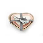 These three delicate heart shape trinket dishes are made of porcelain and glazed to gloss finish. The colours are grey, pink and white, all edged with gold. The dishes are 12.5 cm x 12cm x 3cm, 10.5cm x 10cm x 2cm, 7.cm x 8cm x 2cm respectively. Measurements: D3 x H12 x W12cm